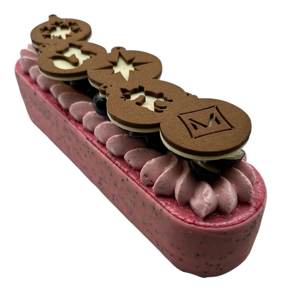 Une mousse fruits rouges aérienne vient envelopper l’ensemble avec légèreté, apportant une fraîcheur acidulée parfaitement maîtrisée. Le croustillant spéculoos, aux notes épicées et chaleureuses, crée un contraste élégant, tandis que le biscuit vanille moelleux offre une base douce et fondante.