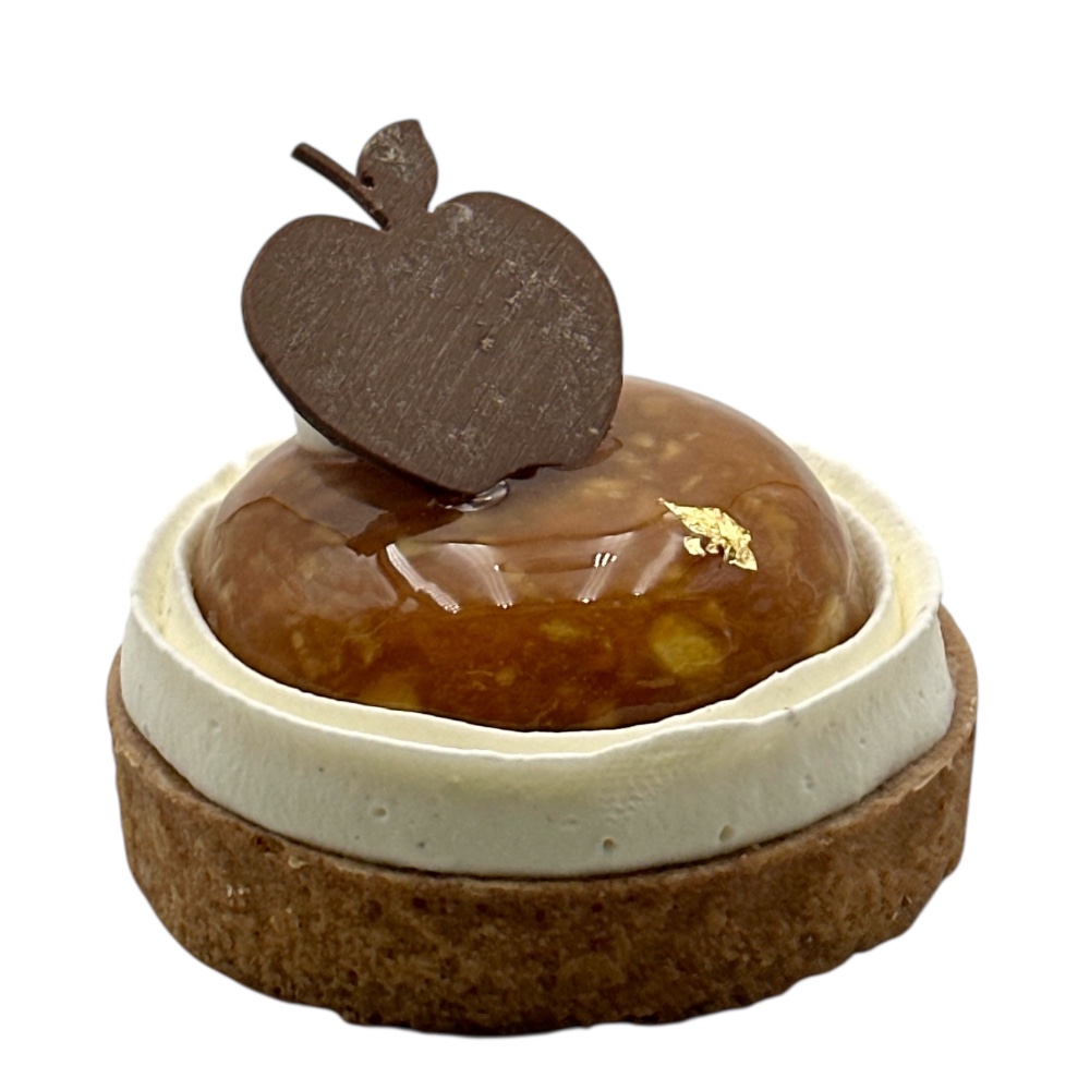 Notre fond de pâte sucrée maison est garni d’une crème onctueuse à la vanille de Madagascar, surmontée d’une généreuse brunoise de pommes caramélisées, fondantes et parfumées. Une touche de crème chantilly vient couronner le tout, pour un contraste de textures aussi délicat que gourmand.